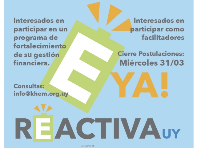 La Incubadora Khem del Instituto Polo Tecnológico de Pando en conjunto con InnovAL del Departamento de Lavalleja y la Oficina de apoyo a mipymes de la Intendencia de Canelones hemos desarrollado el Programa REACTIVA YA!! Convocamos a emprendimientos y mipymes de los…